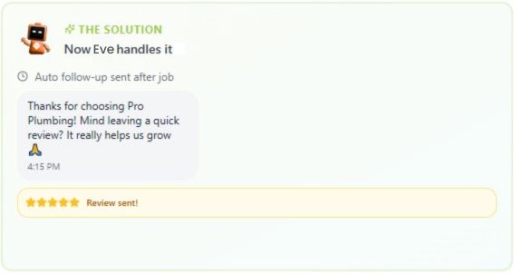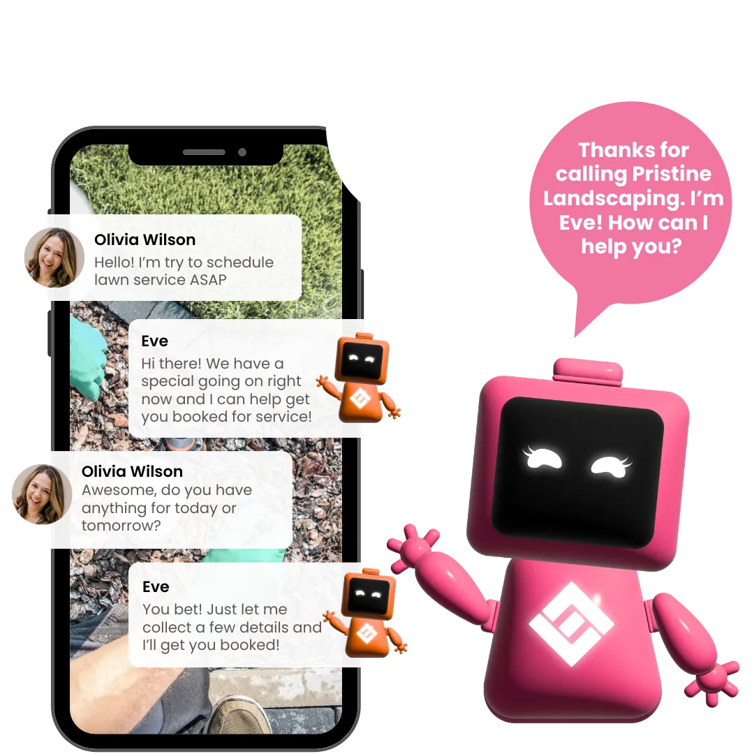 Eve instantly responds to website visitors, Facebook & Instagram messages, inbound texts, and manages review engagement automatically.