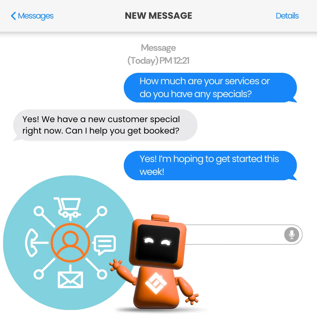 Start chatting to see how your business would capture leads, ask the right questions, and moves prospects toward booking. Experience it exactly like your customers would, live and in real time.